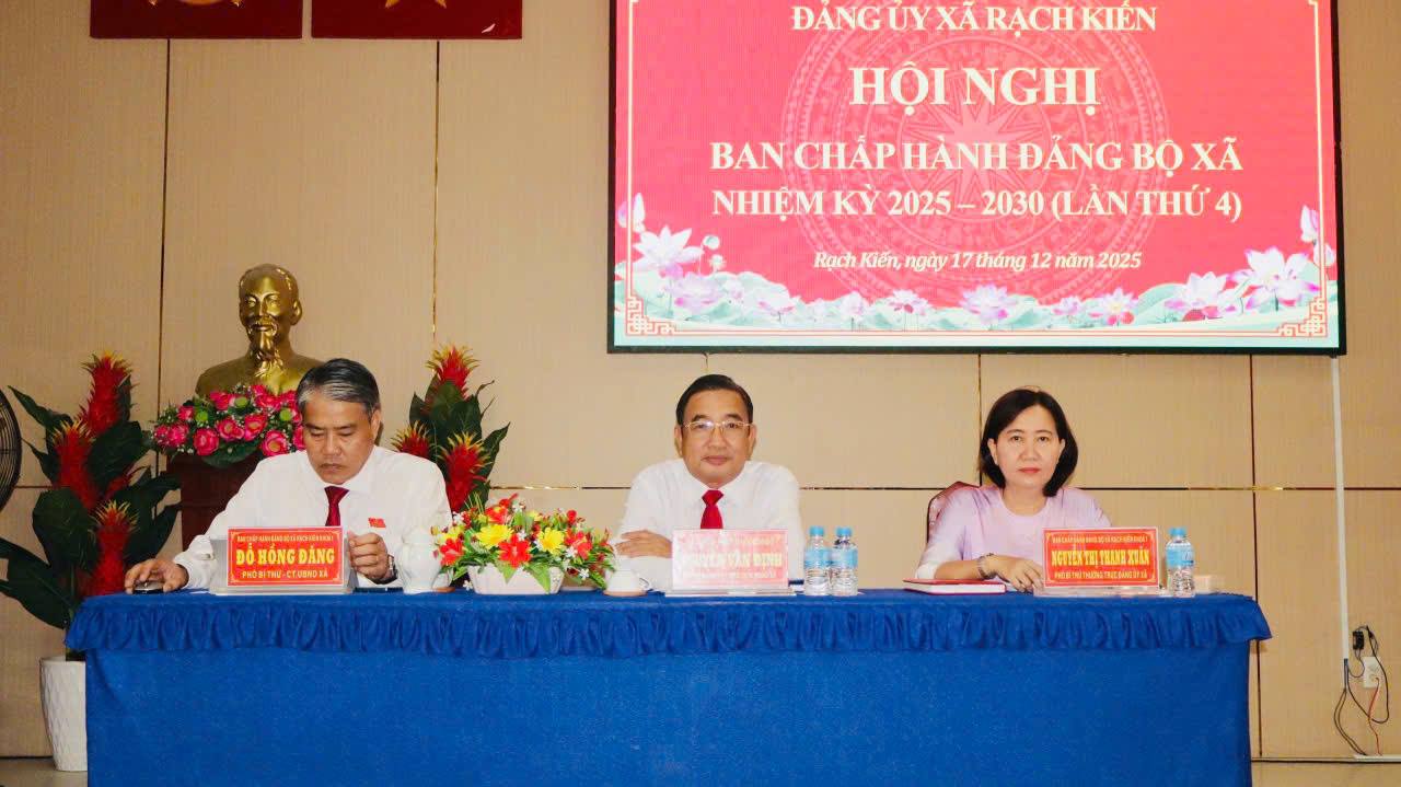 Sáng ngày 17/12/2025, Đảng ủy xã Rạch Kiến tổ chức hội nghị Ban Chấp hành Đảng bộ xã nhiệm kỳ 2025-2030 (lần thứ 4). Thường trực Đảng ủy xã chủ trì hội nghị.