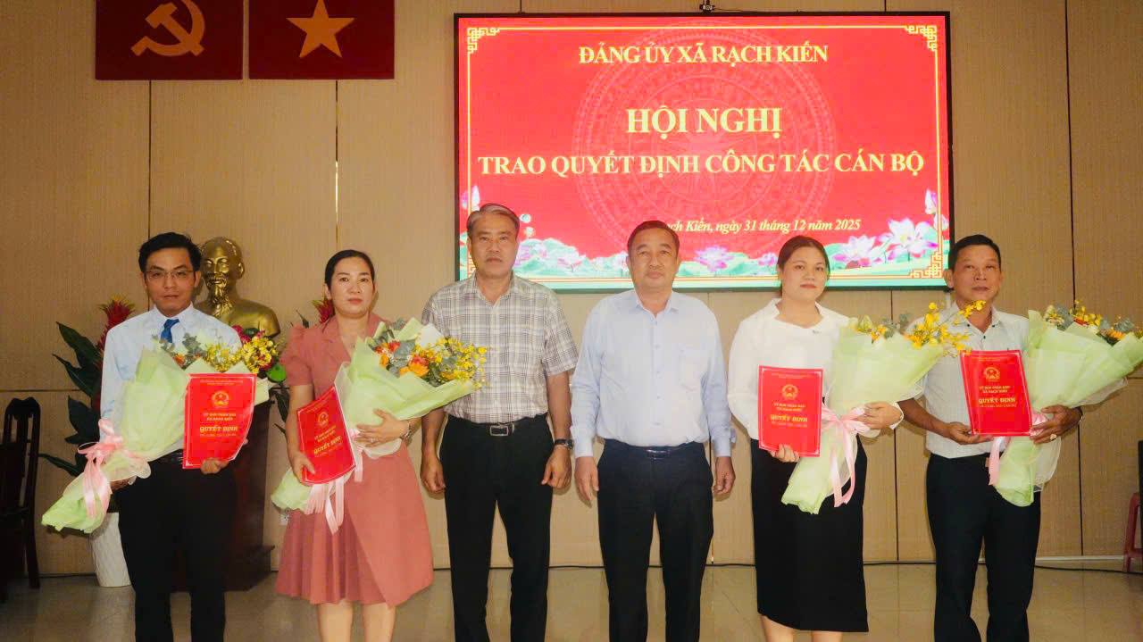 Chiều ngày 03/02/2026, Đảng ủy xã Rạch Kiến, tỉnh Tây Ninh tổ chức hội nghị công bố các quyết định về công tác cán bộ. Thường trực Đảng ủy xã chủ trì và trao các quyết định.